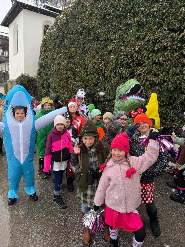 Am Faschingsdienstag, den 17. Februar 2026, wurde in der Schule Fasching gefeiert. Nach dem Schulfilm "Paddington 3" gab es leckere Brezen von den Gemeinden Schwendau und Hippach.