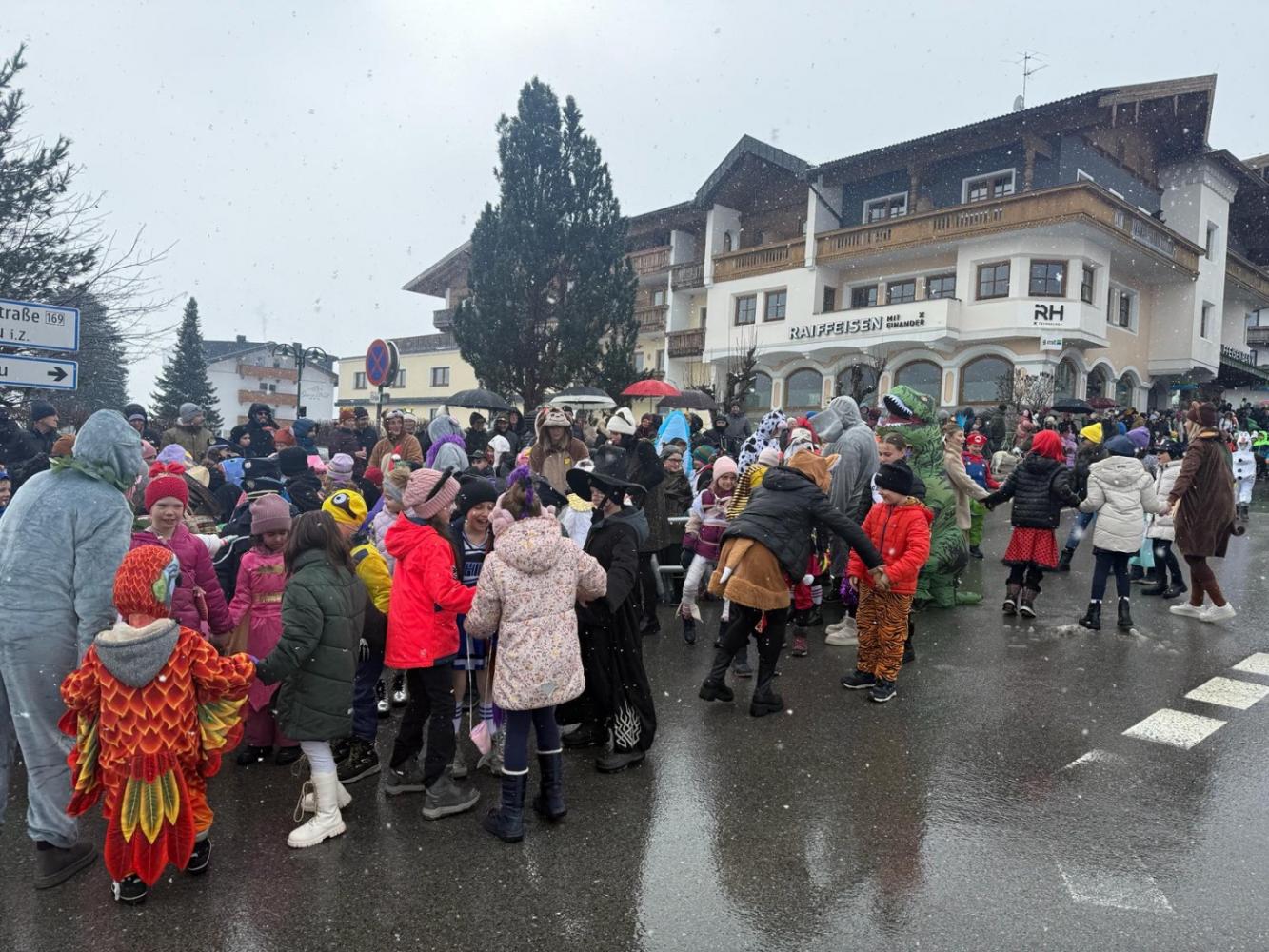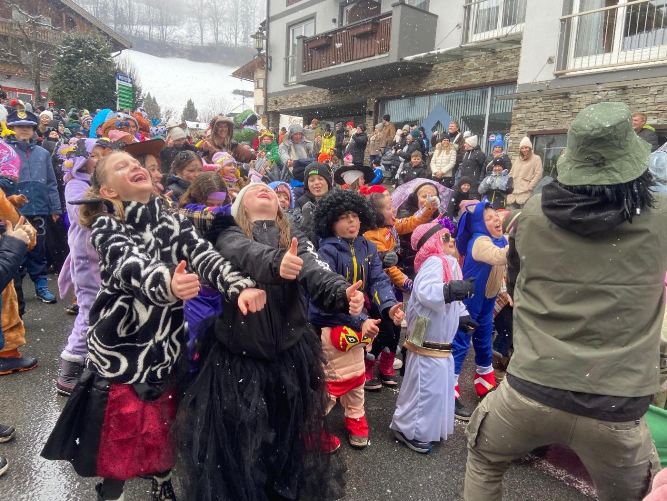 Am Nachmittag fand der Faschingsumzug statt und die Kinder durften den Umzug eröffnen. Nach vielen lustigen Tänzen und viel Applaus von den Zuschauern, wurde das Pavillon in Ramsau erreicht und die Gemeinde Ramsau spendierte noch saftige Faschingskrapfen mit Limonade. Wir möchten uns dafür bei allen Gemeinden recht herzlich bedanken!